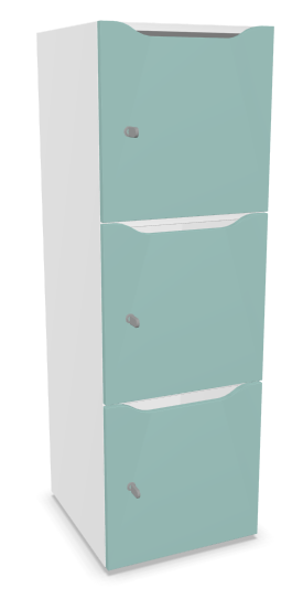 Meuble à cases H.137xL.45xP.50cm - 3 cases H43cm. portes avec découpe en partie haute. serrure à code