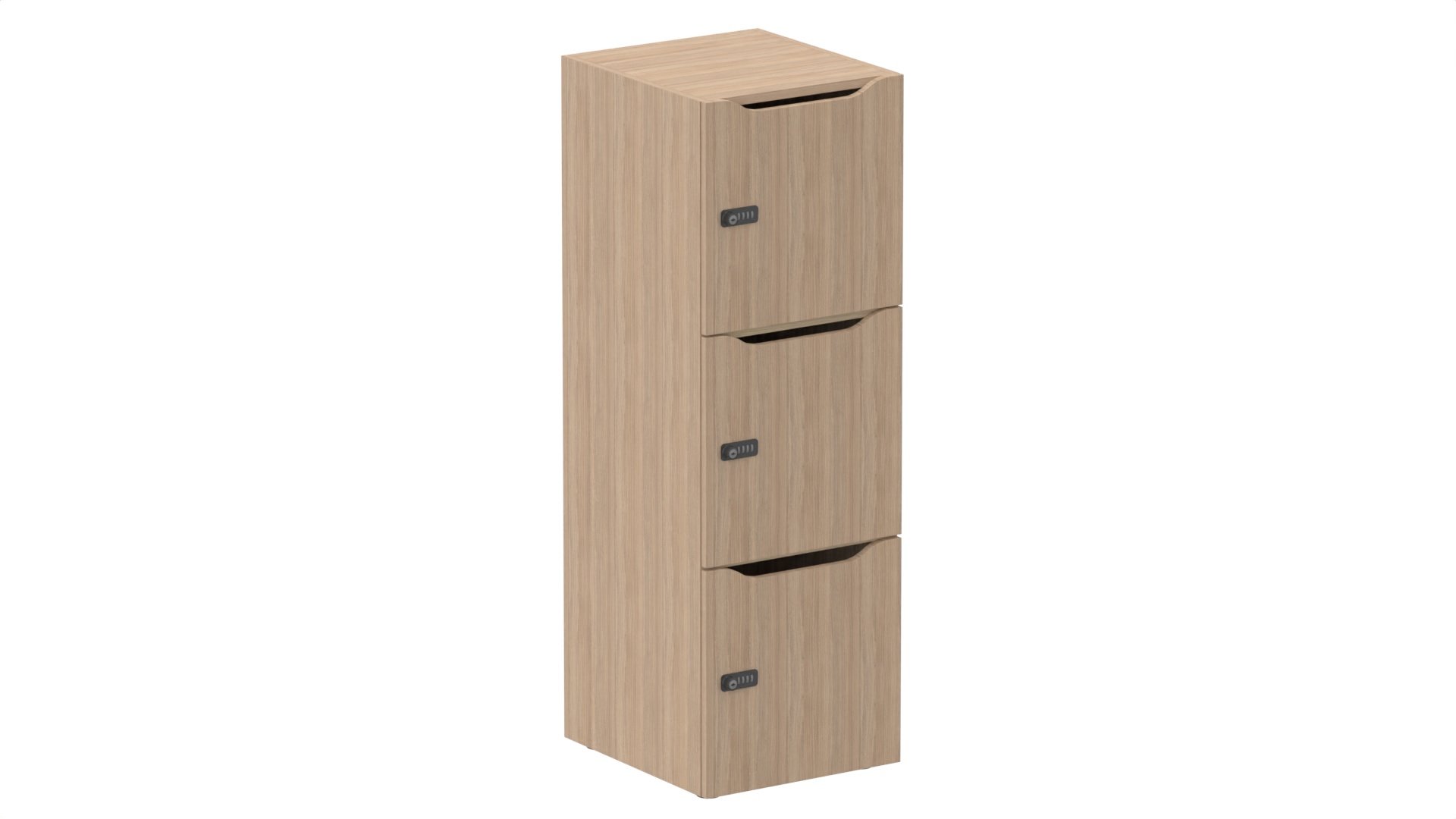 Meuble à cases H.137xL.45xP.50cm - 3 cases H43cm. portes avec découpe en partie haute. serrure à code