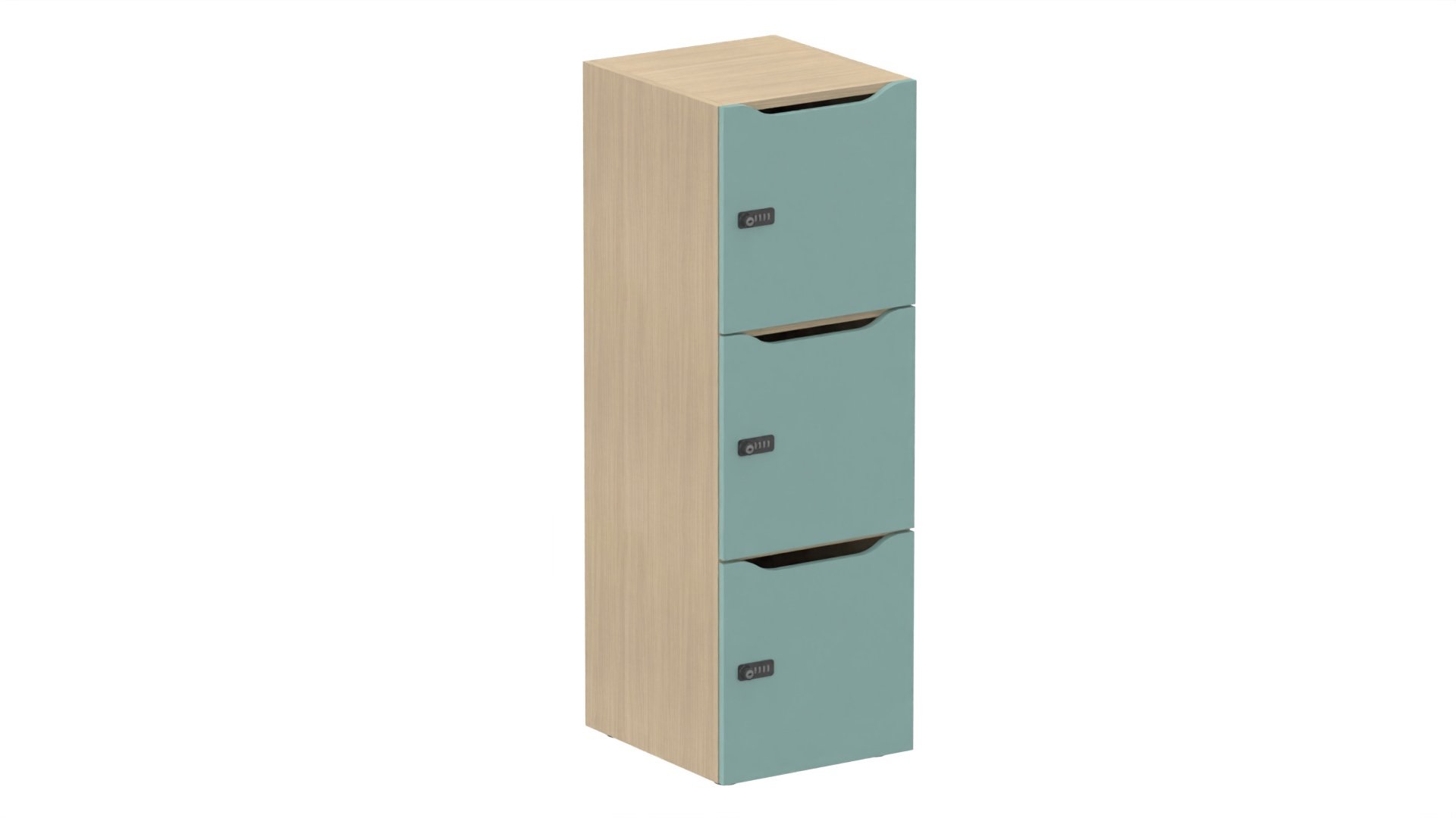 Meuble à cases H.137xL.45xP.50cm - 3 cases H43cm. portes avec découpe en partie haute. serrure à code