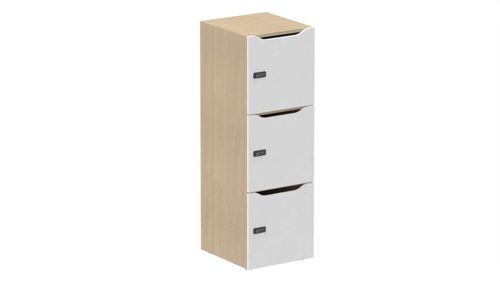 Meuble à cases H.137xL.45xP.50cm - 3 cases H43cm. portes avec découpe en partie haute. serrure à code