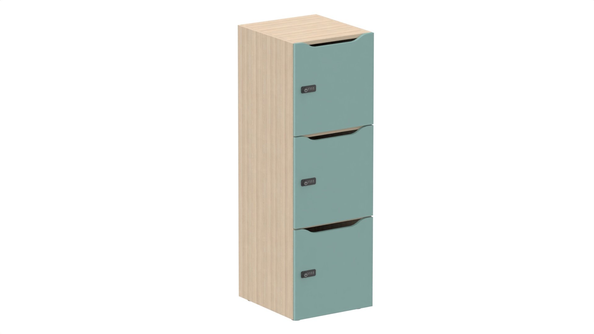 Meuble à cases H.137xL.45xP.50cm - 3 cases H43cm. portes avec découpe en partie haute. serrure à code