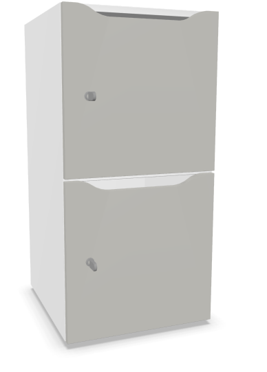 Meuble à cases H.92xL.45xP.50cm - 2 cases H43cm. portes avec découpe en partie haute. serrure à code