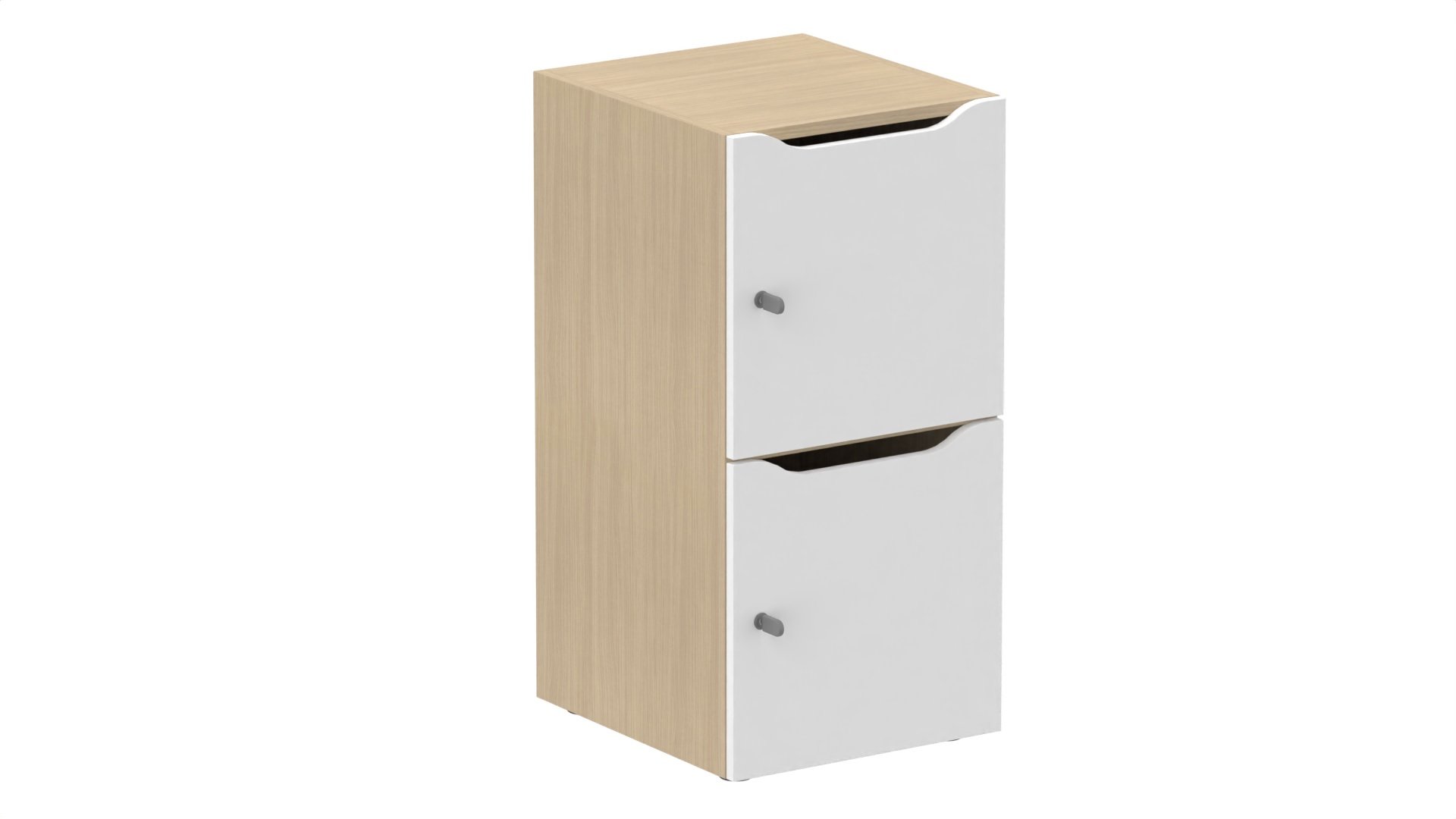 Meuble à cases H.92xL.45xP.50cm - 2 cases H43cm. portes avec découpe en partie haute. serrure à clé