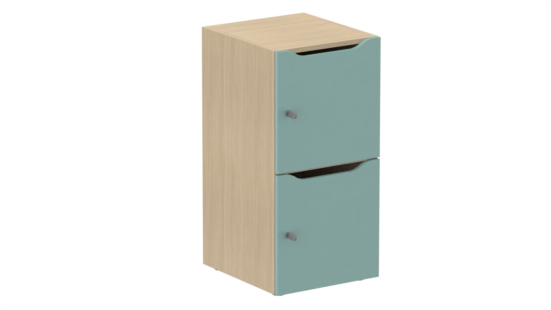 Meuble à cases H.92xL.45xP.50cm - 2 cases H43cm. portes avec découpe en partie haute. serrure à clé