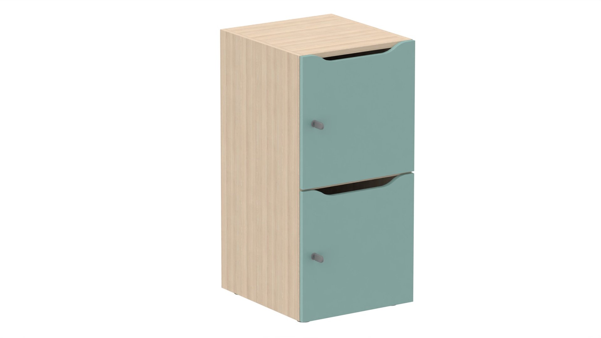 Meuble à cases H.92xL.45xP.50cm - 2 cases H43cm. portes avec découpe en partie haute. serrure à clé
