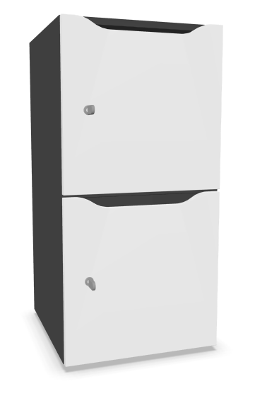 Meuble à cases H.92xL.45xP.50cm - 2 cases H43cm. portes avec découpe en partie haute. serrure à code