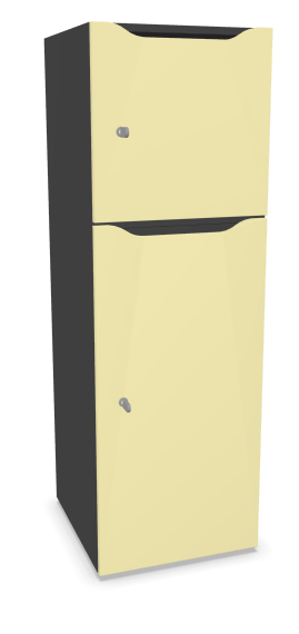 Meuble à cases H.137xL.45xP.50cm - 2 cases : 1 x H86cm (en bas) + 1 x H43cm. portes avec découpe en partie haute. serrure à code