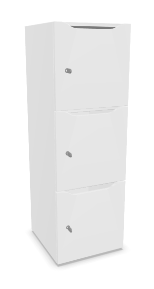 Meuble à cases H.137xL.45xP.50cm - 3 cases H43cm. portes avec découpe en partie haute. serrure à code