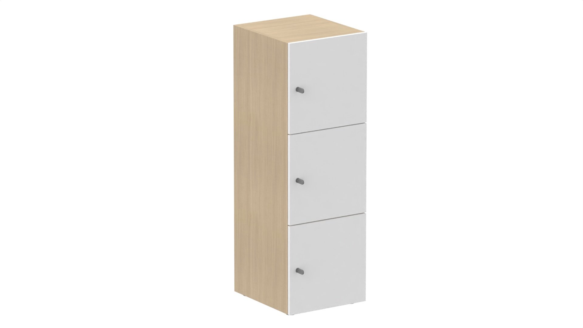 Meuble à cases H.137xL.45xP.50cm - 3 cases H43cm. portes avec découpe en partie haute. serrure à code