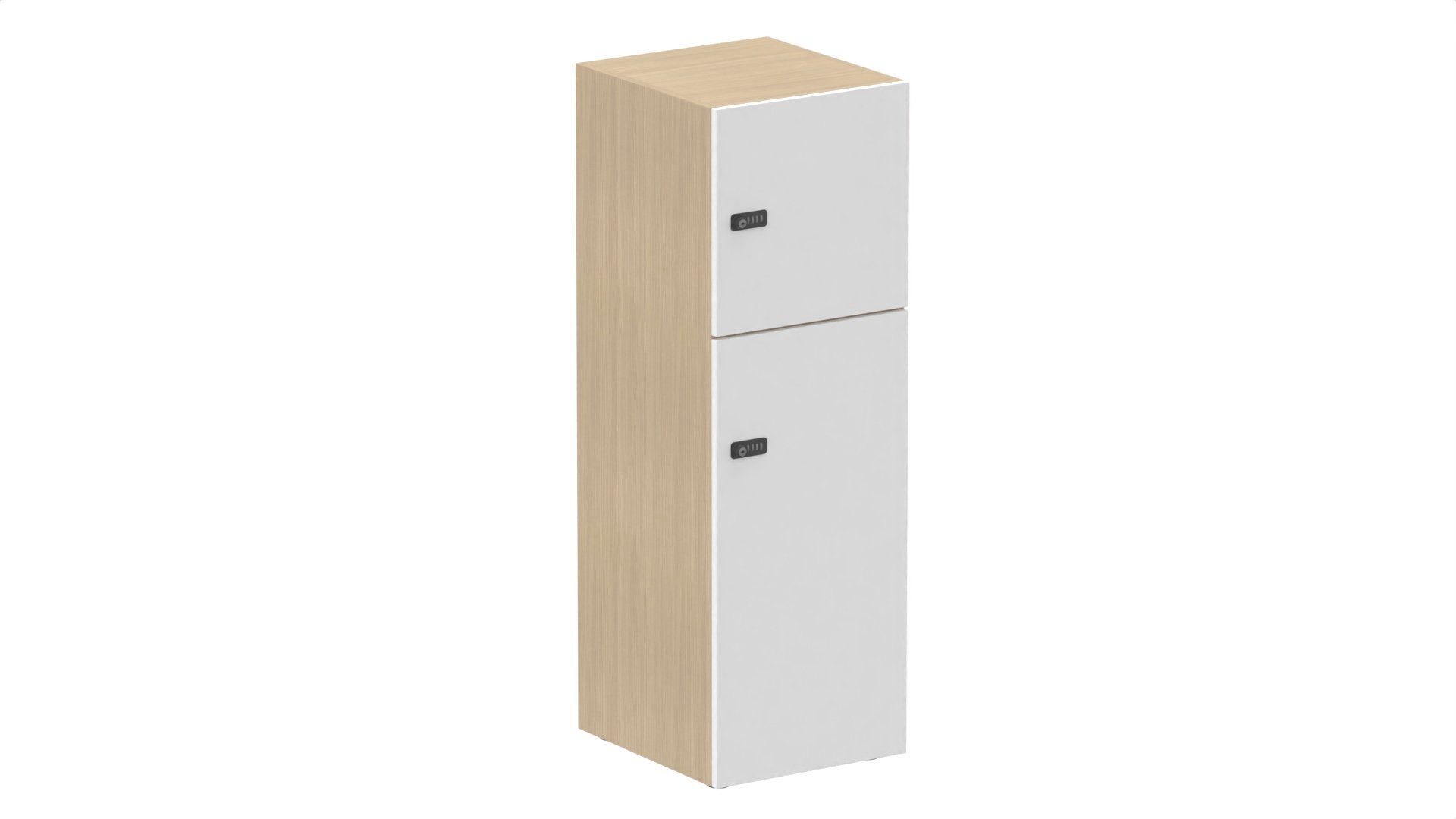 2 cases : 1 x H86cm (en bas) + 1 x H43cm. portes pleine. serrure à code. corps coloris blanc (M1). portes mélamine coloris blanc (M1)