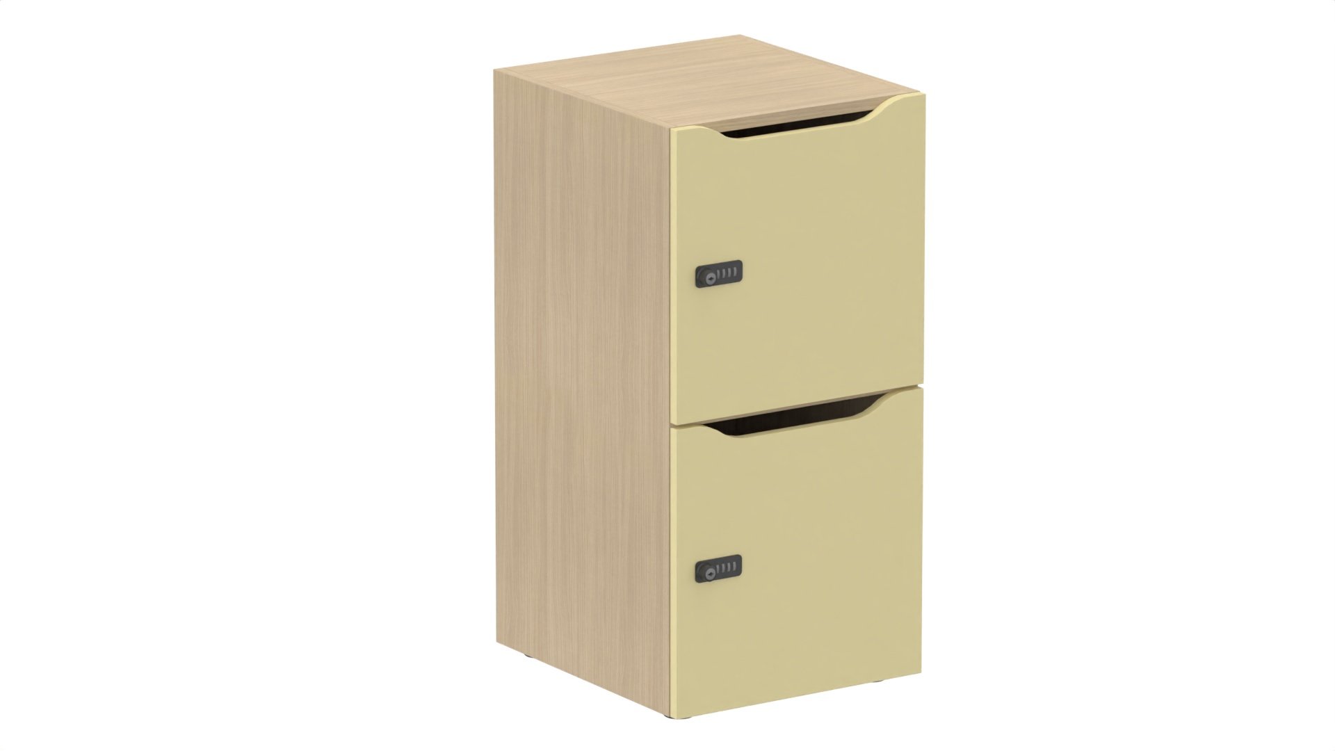 Meuble à cases H.92xL.45xP.50cm - 2 cases H43cm. portes avec découpe en partie haute. serrure à code