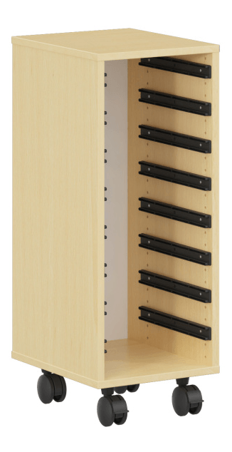 Meuble PICCOLO mobile mélaminé 32 bacs transparents - L138,5xP45xH95 cm - Hêtre miel