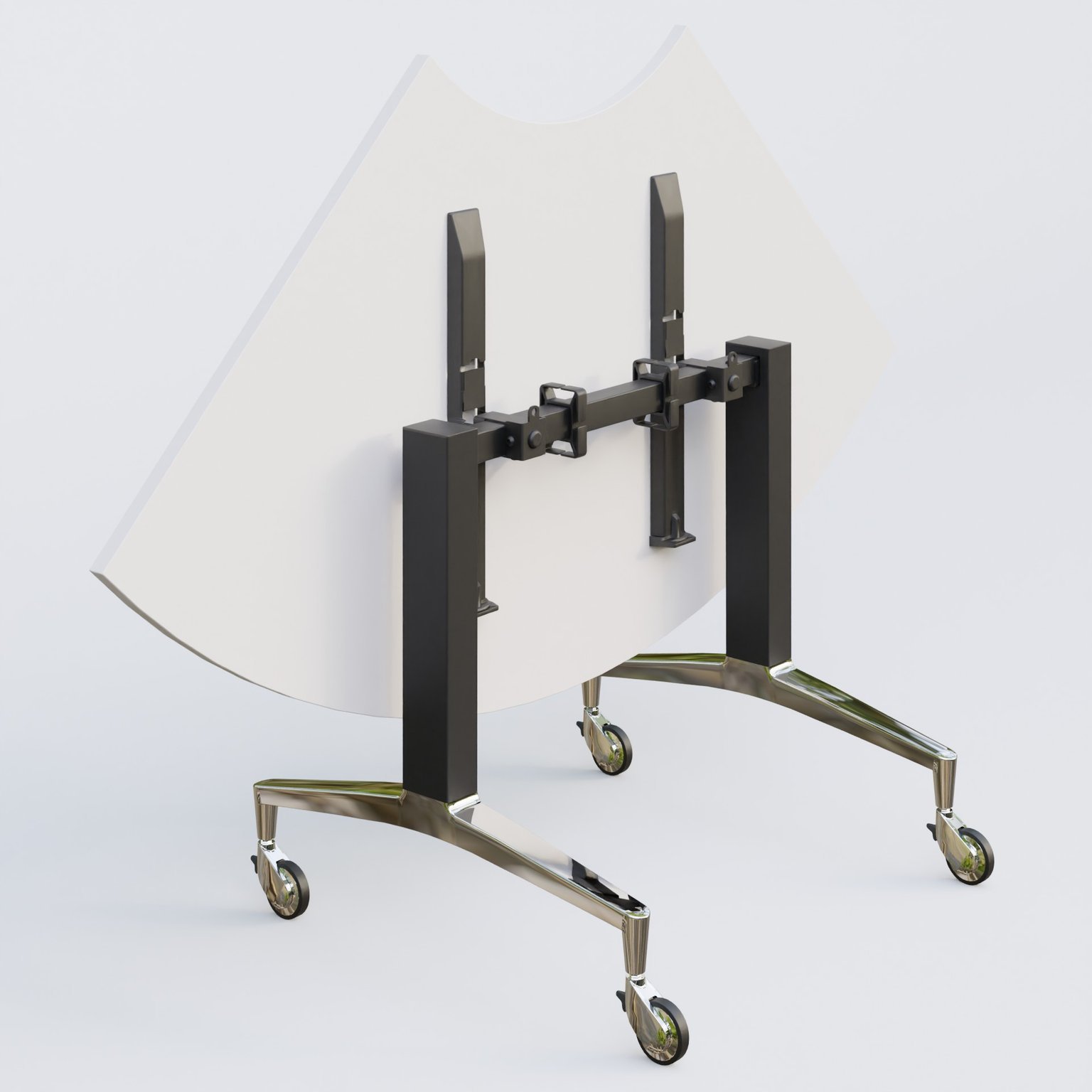 Module 1/4 de couronne de la gamme LEM 120-120 cm avec plateau en 25 mm d'épaisseur. Mécanisme actionné par deux poignées facilement accéssibles sous le plateau.
