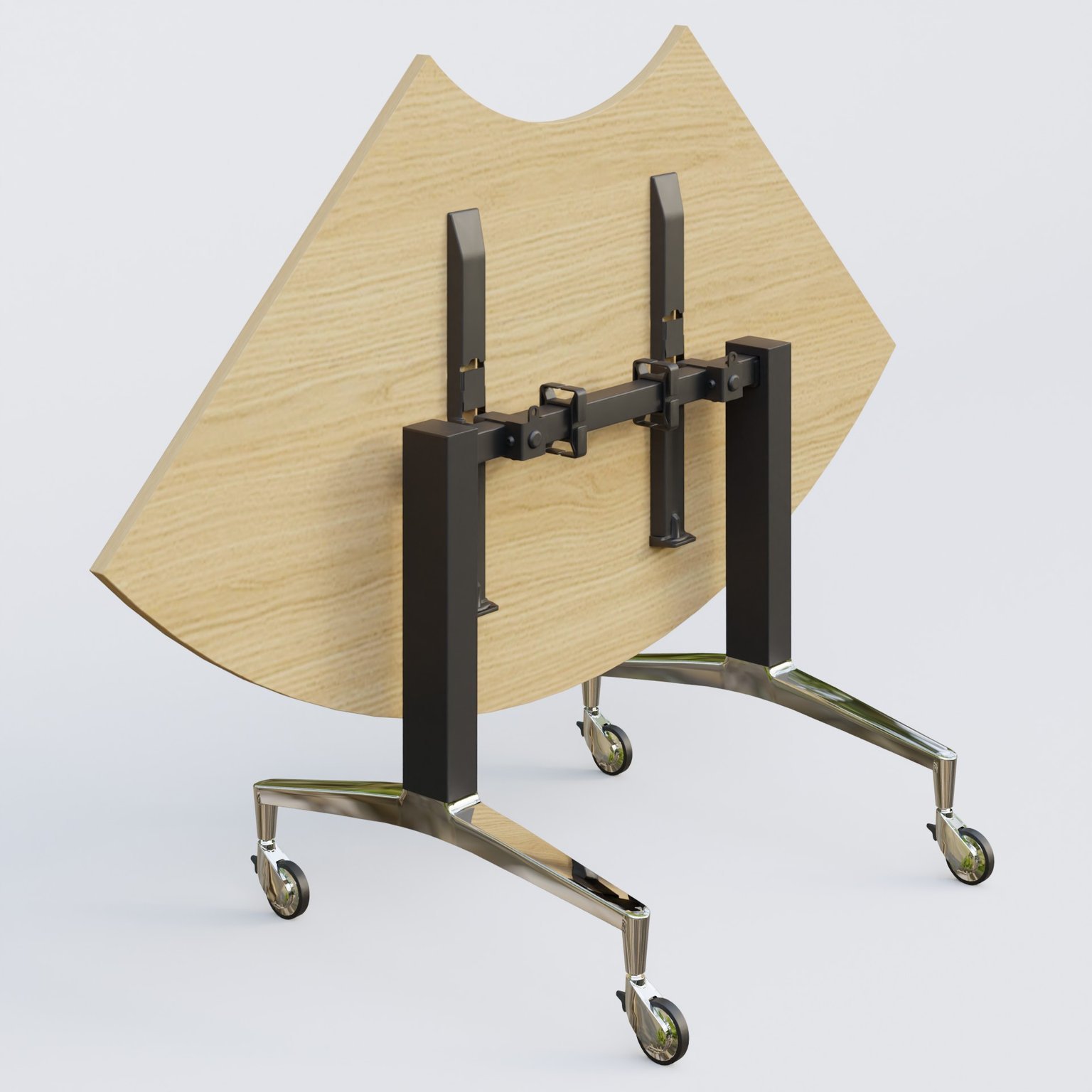 Module 1/4 de couronne de la gamme LEM 120-120 cm. Plateau Chêne clair et pietement Noir/Chrome.