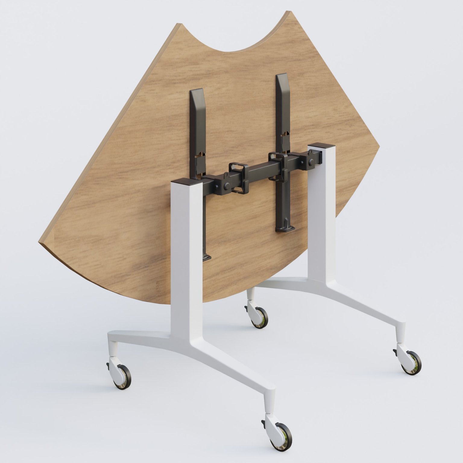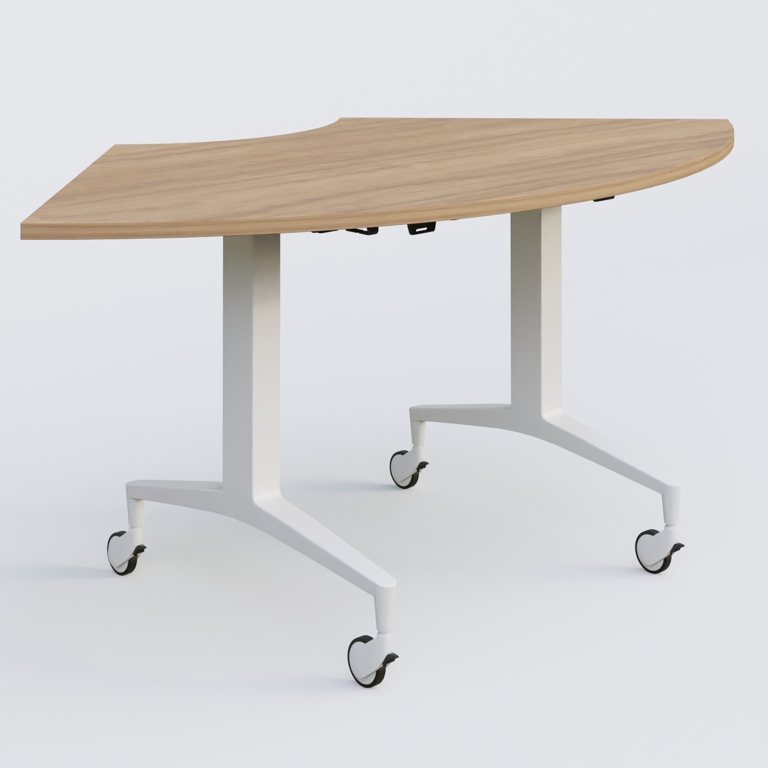 Module 1/4 de couronne de la gamme LEM 120-120 cm avec plateau en 25 mm d'épaisseur. Mécanisme actionné par deux poignées facilement accéssibles sous le plateau.