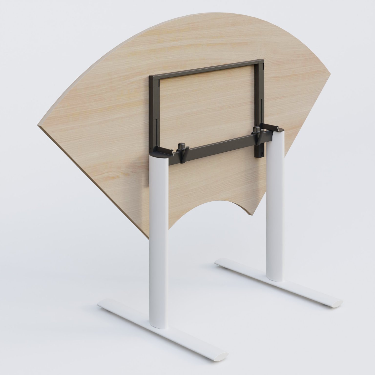 Module 1/4 de couronne gamme Pure 120-120 cm avec plateau en 25 mm d'épaisseur. Mécanisme de blocage/déblocage avec une barre sous le plateau.