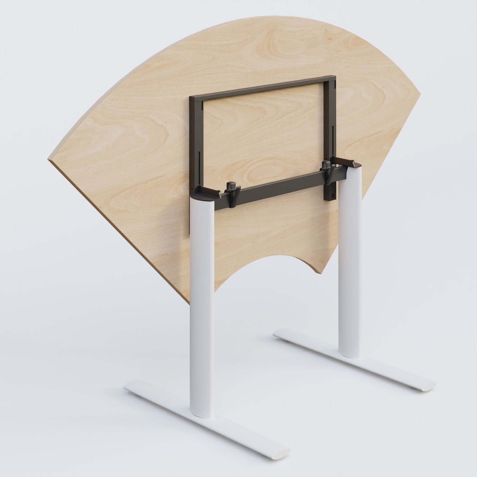 Module 1/4 de couronne gamme Pure 120-120 cm avec plateau en 25 mm d'épaisseur. Mécanisme de blocage/déblocage avec une barre sous le plateau.