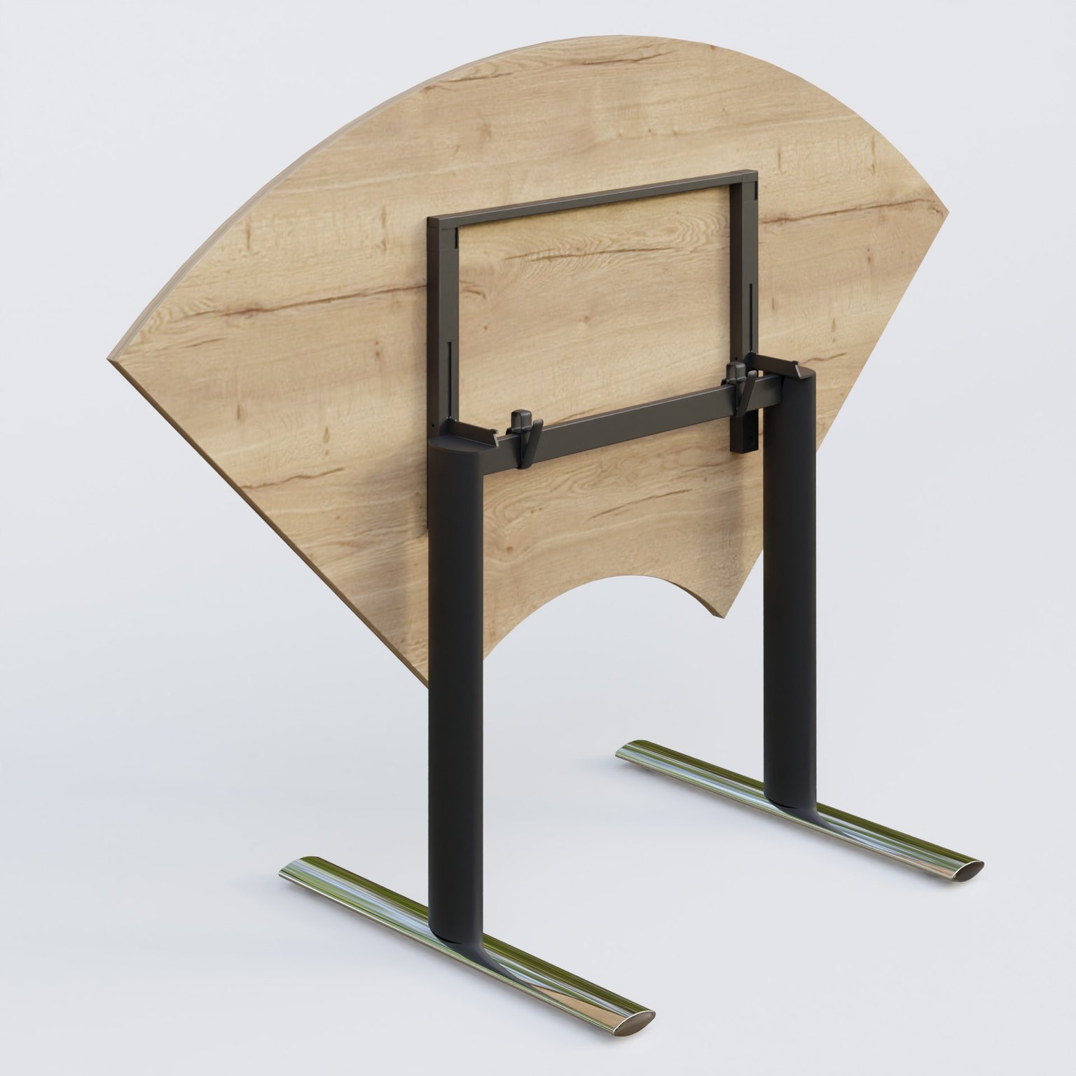 Module 1/4 de couronne gamme Pure 120-120 cm avec plateau en 25 mm d'épaisseur. Mécanisme de blocage/déblocage avec une barre sous le plateau.