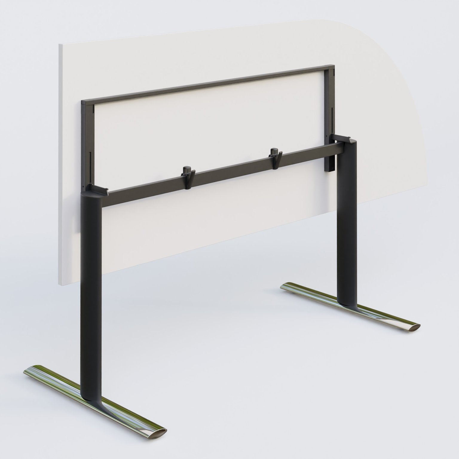 Module d'angle 90° intégré à droite, gamme Pure 200-80 cm. Plateau Blanc et pietement Noir/Chrome.