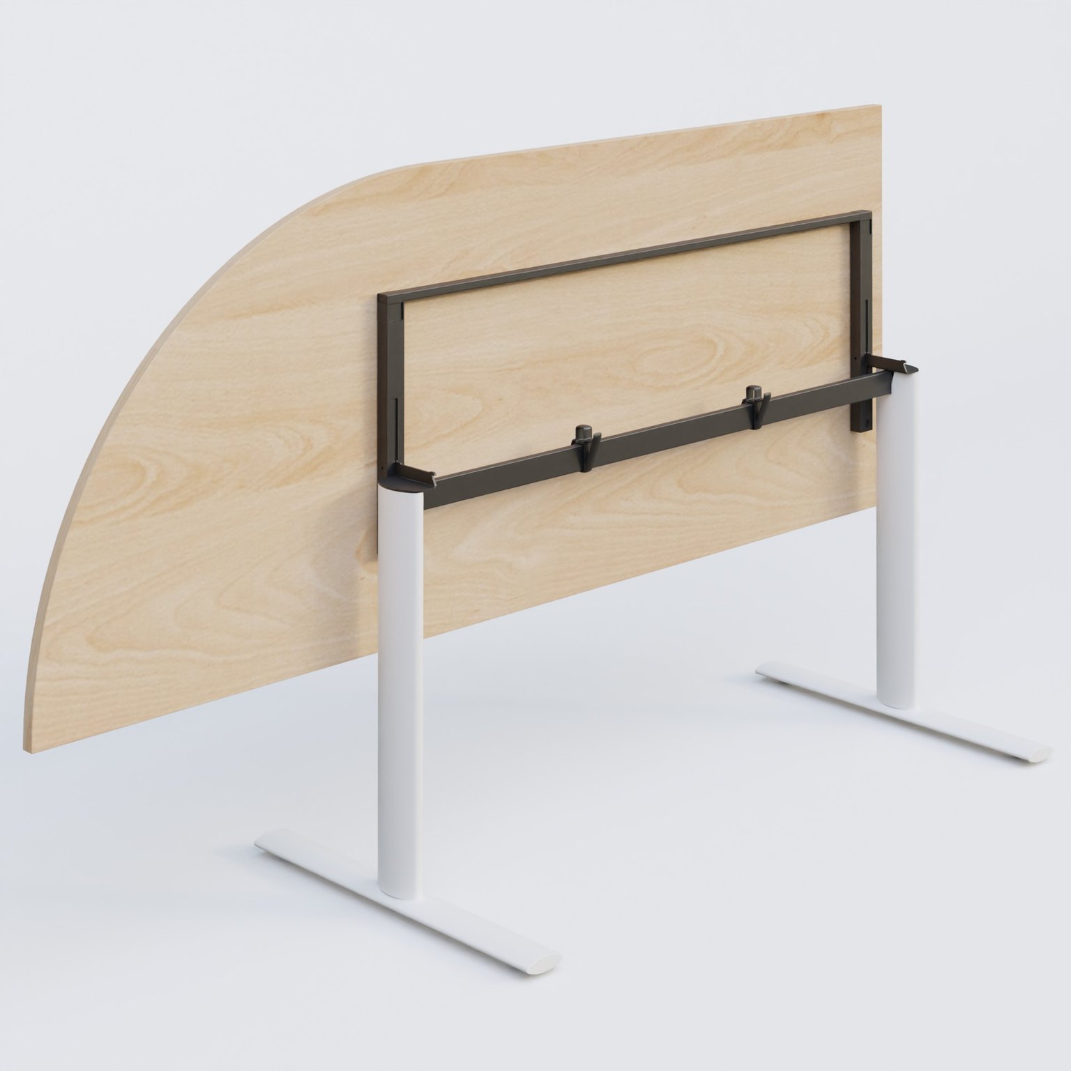 Module d'angle 90° intégré à gauche, gamme Pure 200-80 cm avec plateau en 25 mm d'épaisseur. Mécanisme de blocage/déblocage avec une barre sous le plateau.