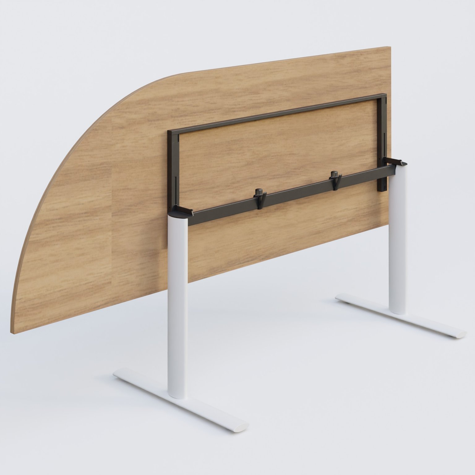 Module d'angle 90° intégré à gauche, gamme Pure 200-80 cm avec plateau en 25 mm d'épaisseur. Mécanisme de blocage/déblocage avec une barre sous le plateau.