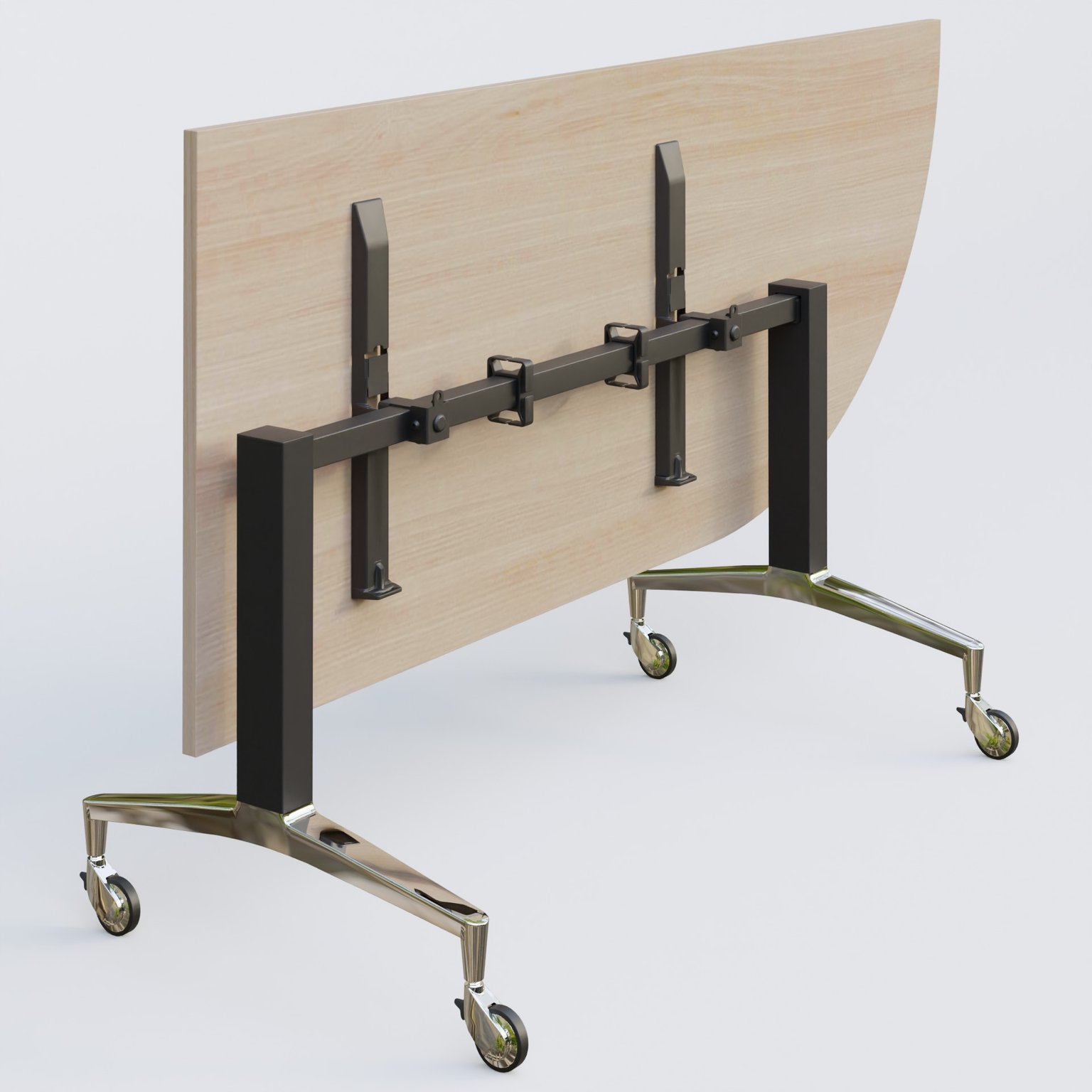 Module d'angle à 90° intégré coté droit de la gamme LEM 200-110 cm avec plateau en 25 mm d'épaisseur. Mécanisme actionné par deux poignées facilement accéssibles sous le plateau.