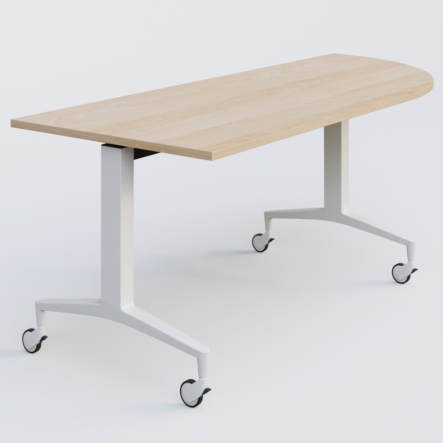Module d'angle à 90° intégré coté droit de la gamme LEM 200-110 cm. Plateau Hêtre et pietement Blanc.