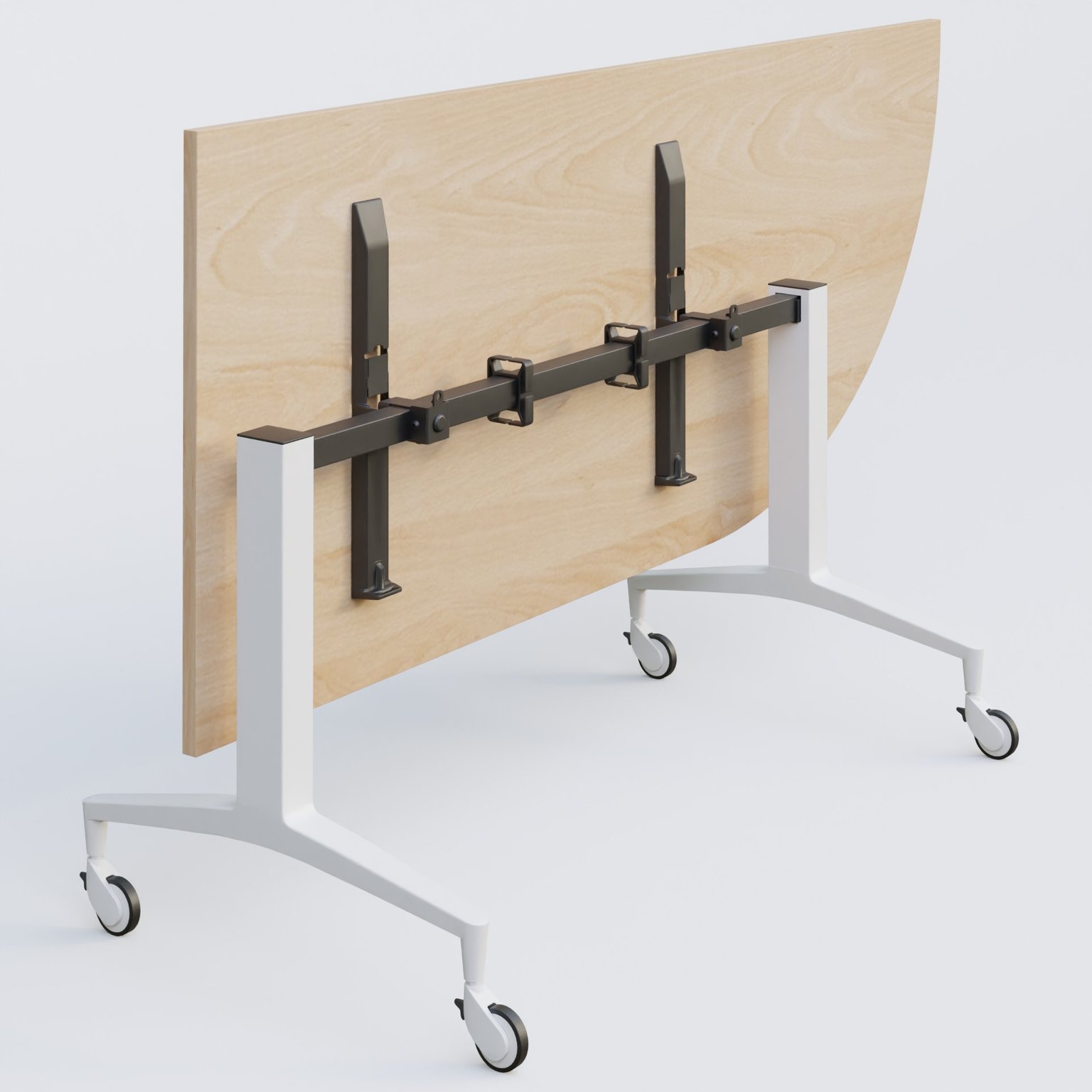 Module d'angle à 90° intégré coté droit de la gamme LEM 200-110 cm avec plateau en 25 mm d'épaisseur. Mécanisme actionné par deux poignées facilement accéssibles sous le plateau.