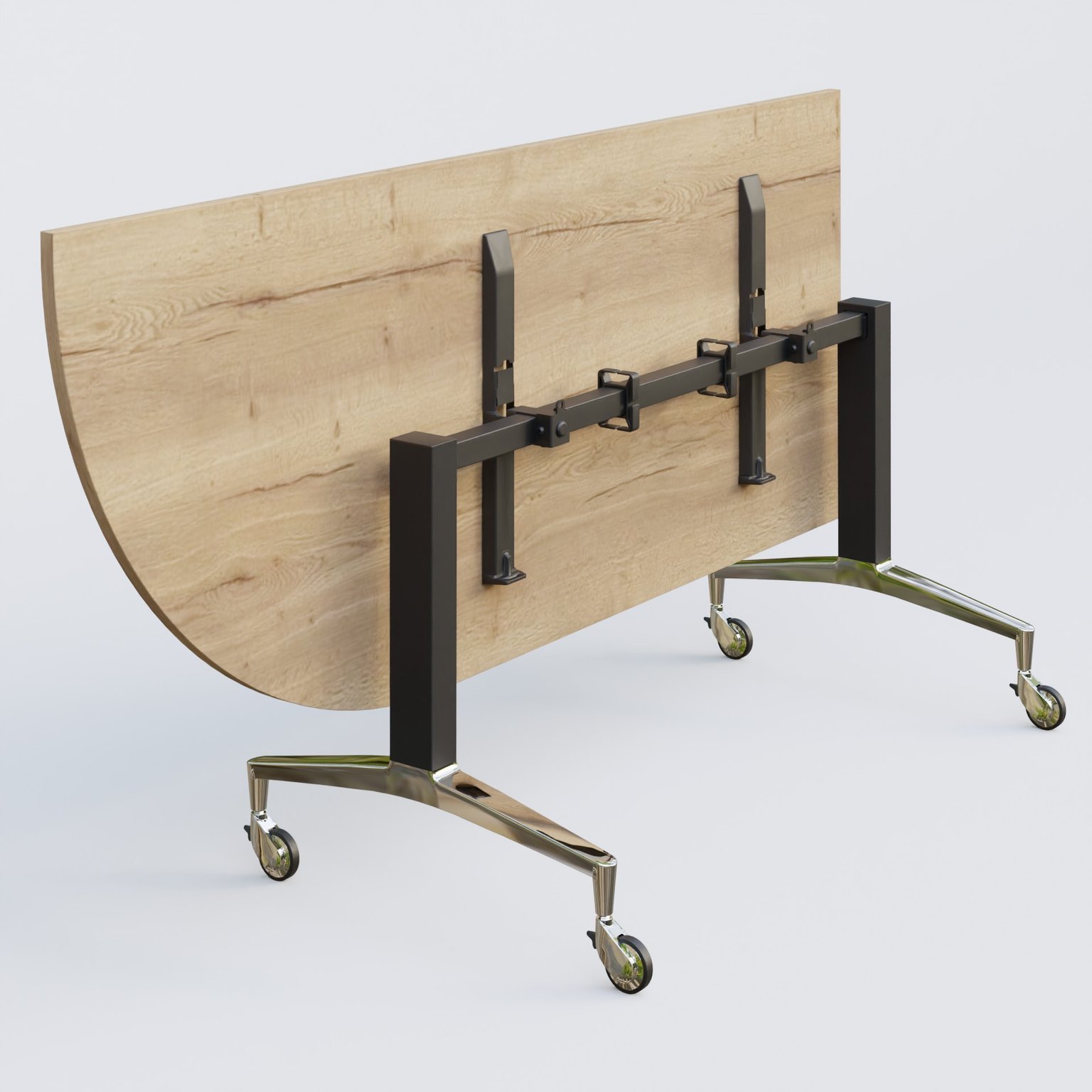 Module d'angle à 90° intégré coté gauche de la gamme LEM 200-110 cm avec plateau en 25 mm d'épaisseur. Mécanisme actionné par deux poignées facilement accéssibles sous le plateau.