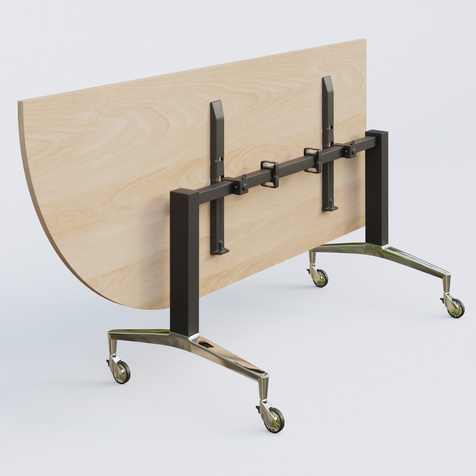 Module d'angle à 90° intégré coté gauche de la gamme LEM 200-110 cm. Plateau Hêtre et pietement Noir/Chrome.
