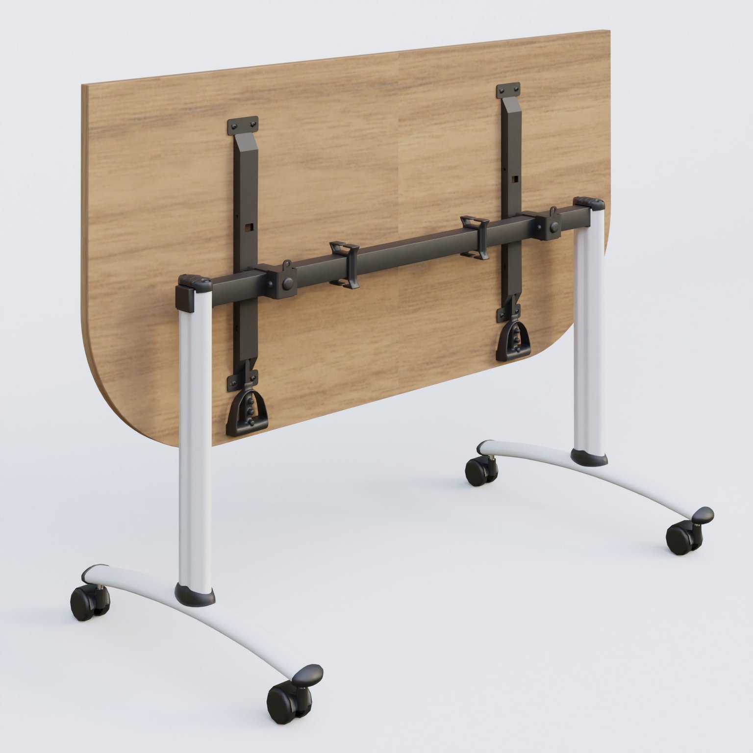 Module d'extrémité pour table abattante gamme Arca 145-70 cm avec plateau en 25 mm d'épaisseur. Mécanisme de blocage/déblocage avec deux poignées sous le plateau aisémant accessibles.