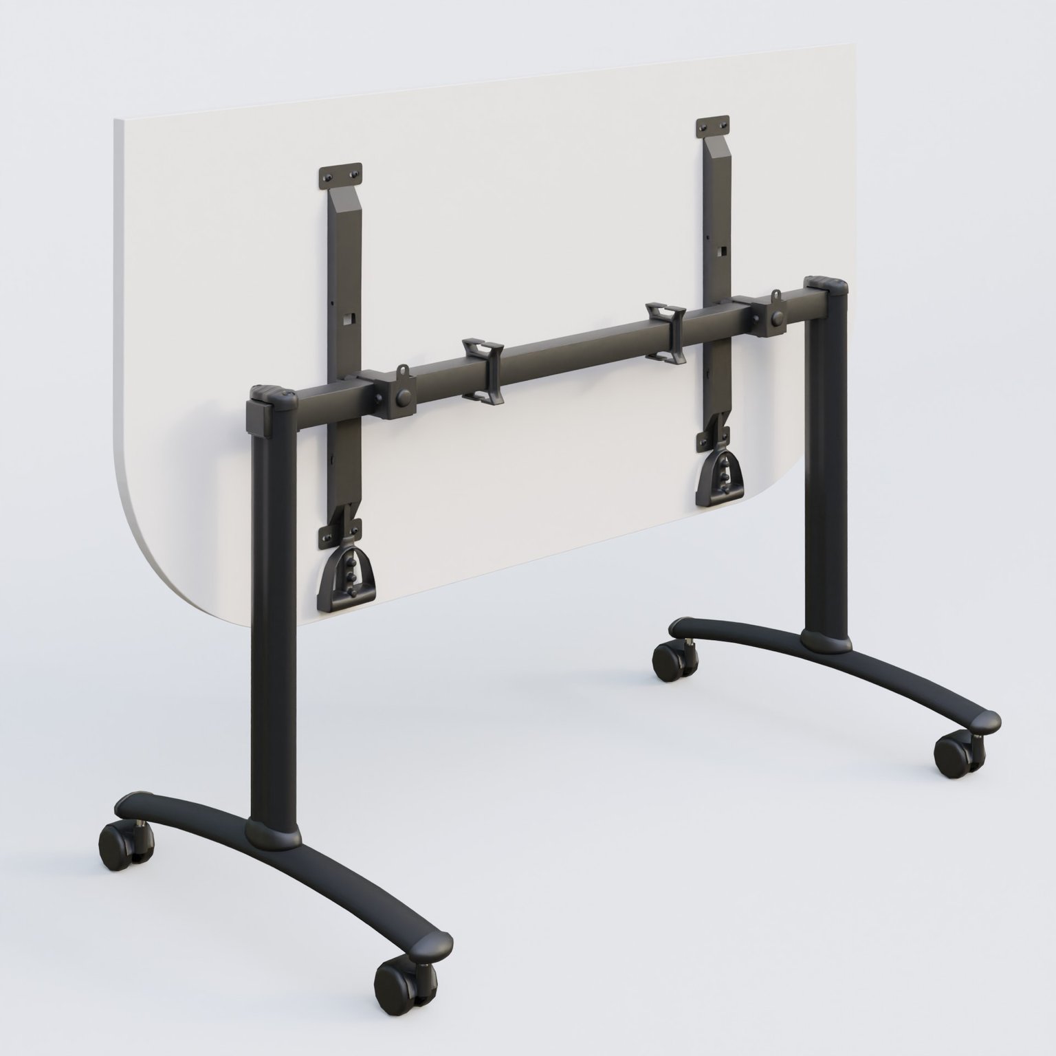 Module d'extrémité pour table abattante gamme Arca 165-80 cm avec plateau en 25 mm d'épaisseur. Mécanisme de blocage/déblocage avec deux poignées sous le plateau aisémant accessibles.