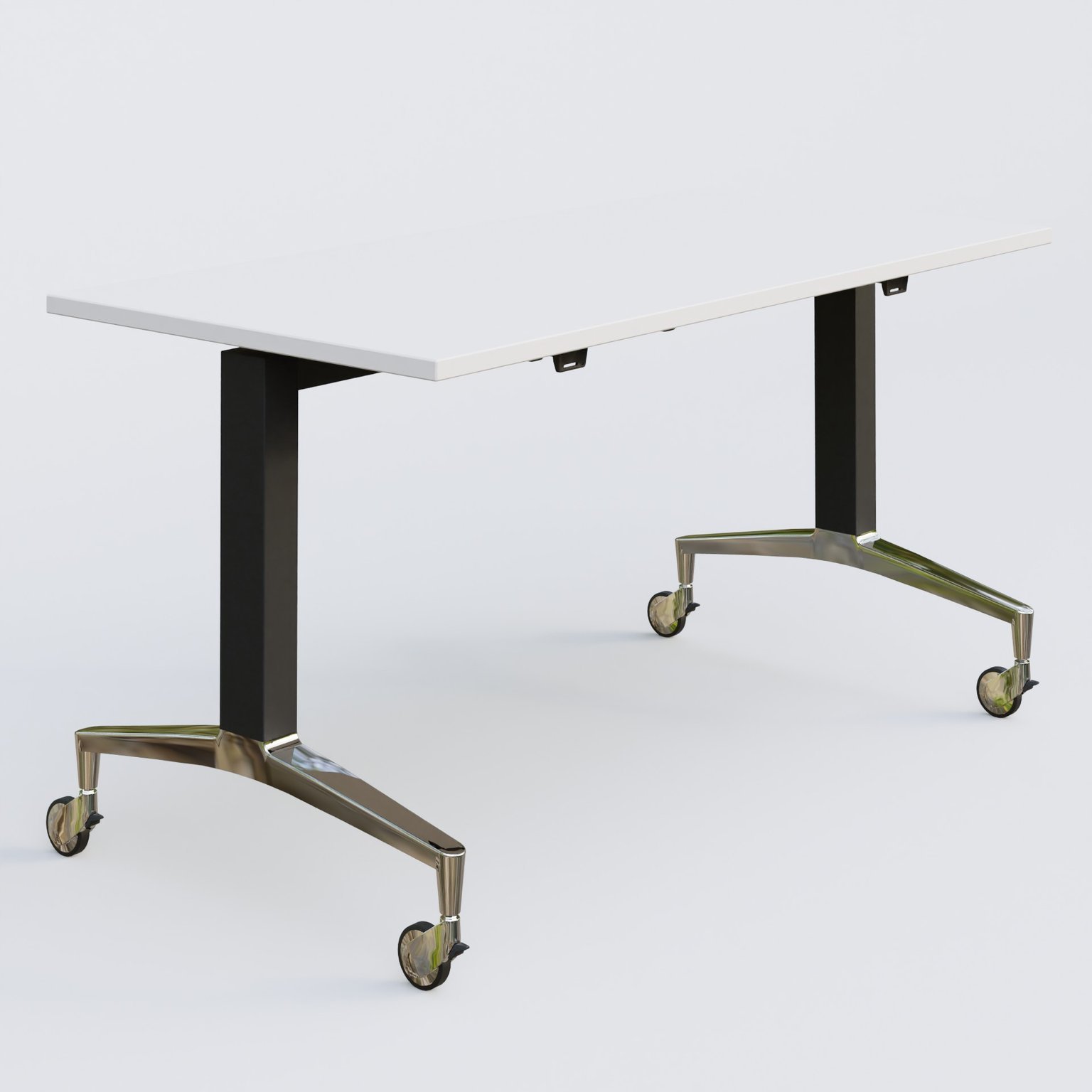 Module droit de la gamme LEM 140-70 cm. Plateau Blanc et pietement Noir/Chrome.
