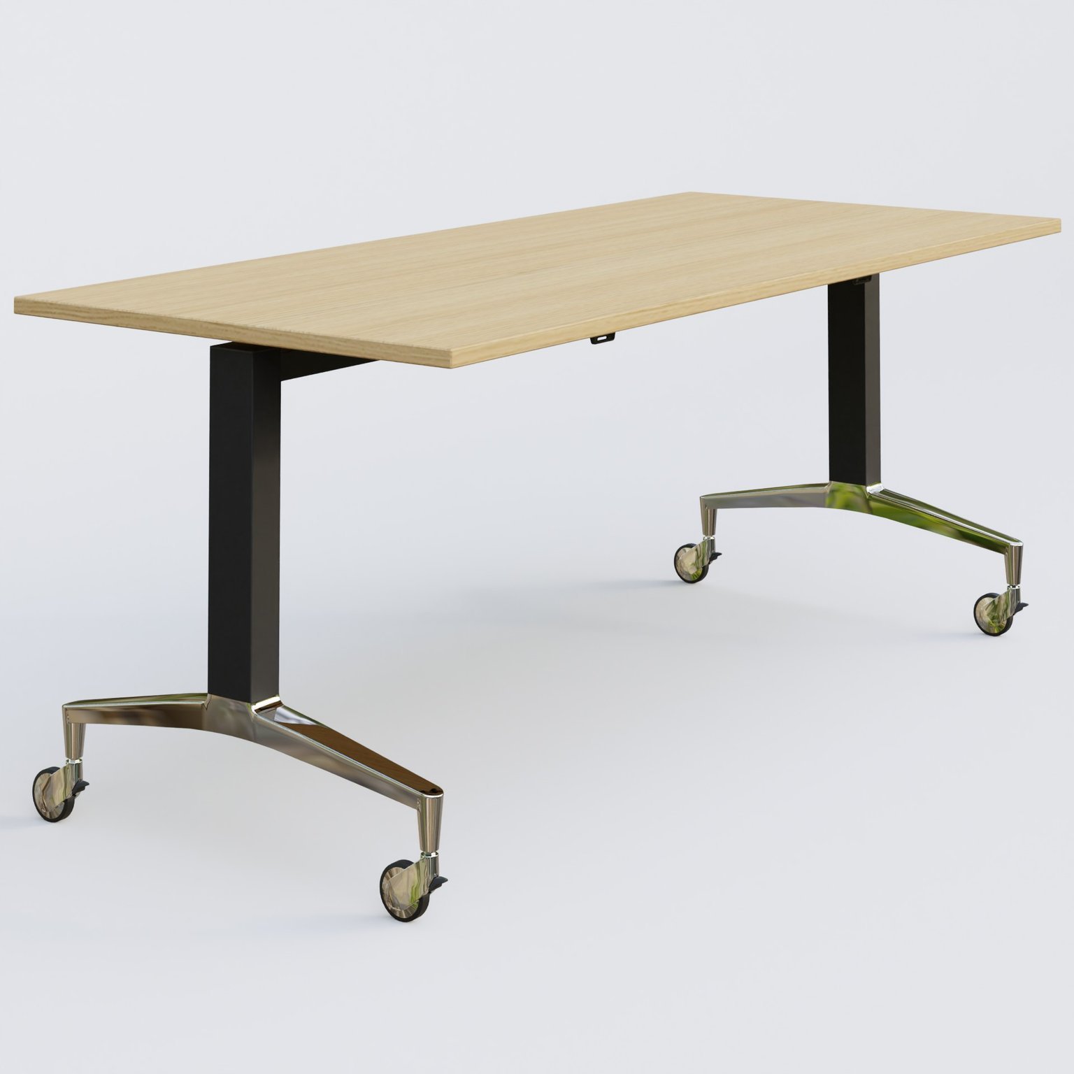 Module droit de la gamme LEM 180-80 cm. Plateau Chêne clair et pietement Noir/Chrome.