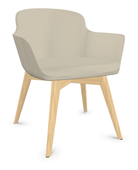 NAPOLEON Siège Lounge coque polyuréthane moulée tapissée Valencia Ivoire / pieds bois