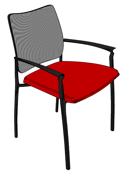 OMNIA Fauteuil 4 pieds époxy coloris noir. dos résille coloris noir