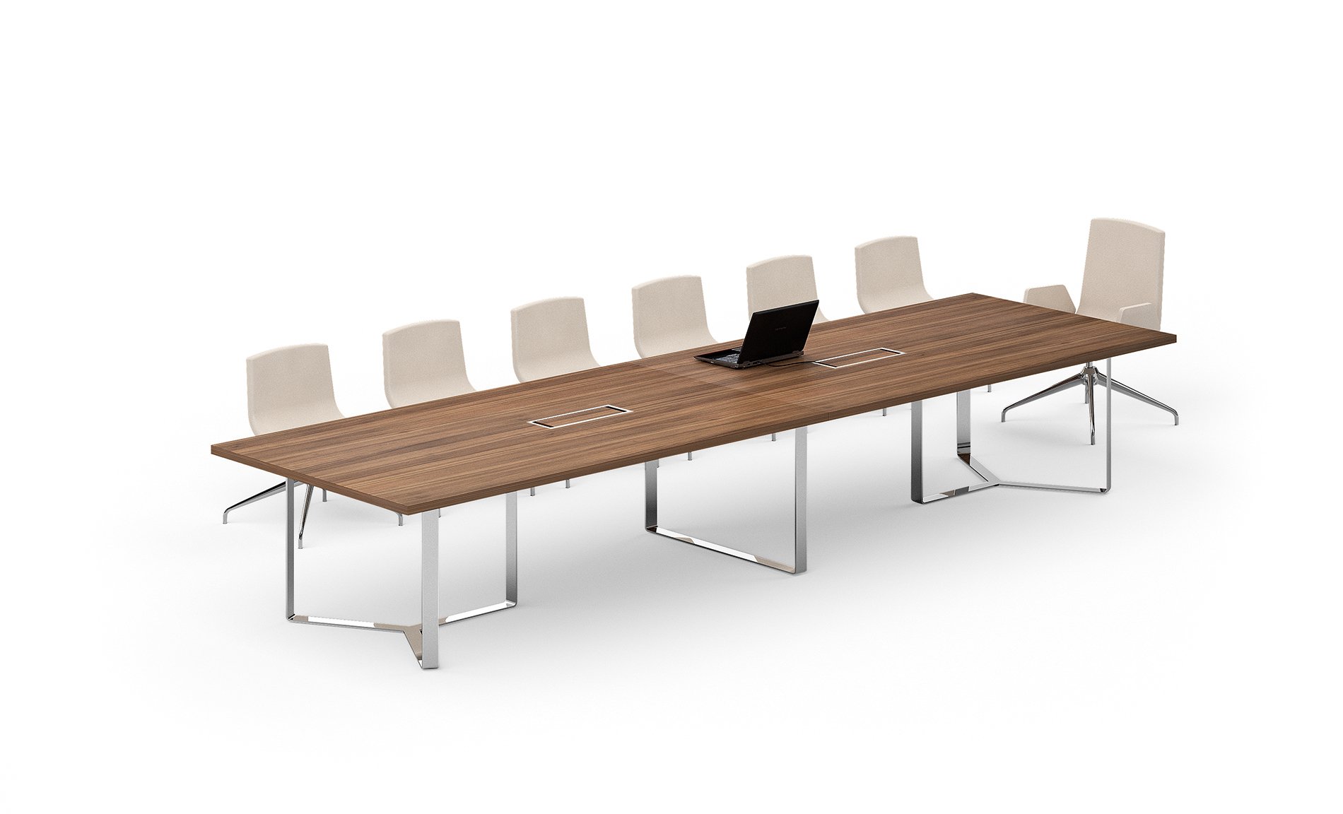 P1 Table de réunion L.420xP.120cm sur 2 pieds centraux + 1 pied intermédiaire. capacité 14 personnes. 2 top access