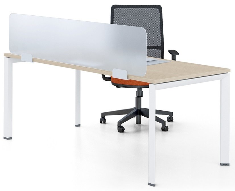 Plexiglas épaisseur 6 mm. Hauteur de 35 cm. Largeur utile : 104 cm Disponible en blanc translucide. Fixation sous le plateau par platines vissées. En renversant les panneaux-écrans, ils deviennet des voiles de fond très décoratifs. Fixation coloris blanc (BL). Autres coloris disponibles sur demande => nous consulter au 03.44.38.10.10 Plexiglas : • Orange - PO • Bleu - PB • Vert - PV Fixation : • Aluminium - AL