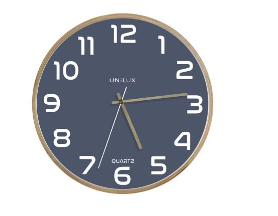 Pendule Classic silencieuse cadre hêtre, fond Bleue