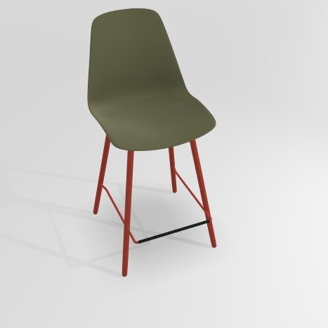 PETALE- Chaise haute-Finitions : coque POLYPROPYLENE-LISSE coloris VERT BRONZE (PP60) / PIETEMENT EPOXY : structure coloris ROUGE MAT (EP39)