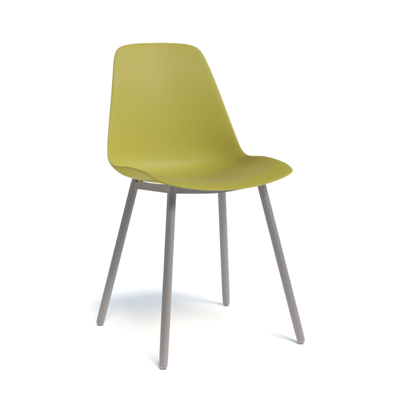 PETALE - Chaise -Finitions : coque POLYPROPYLENE-LISSE coloris LIGHT OLIVE (PP69) / PIETEMENT EPOXY : coloris BRUN FONCE MAT (EP88)