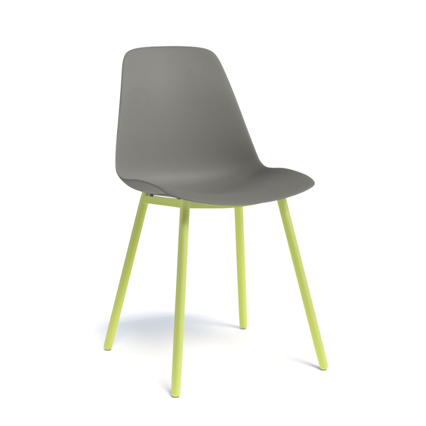 PETALE - Chaise -Finitions : coque POLYPROPYLENE-LISSE coloris TAUPE FONCE (PP88) / PIETEMENT EPOXY : coloris LIGHT OLIVE MAT (EP69)