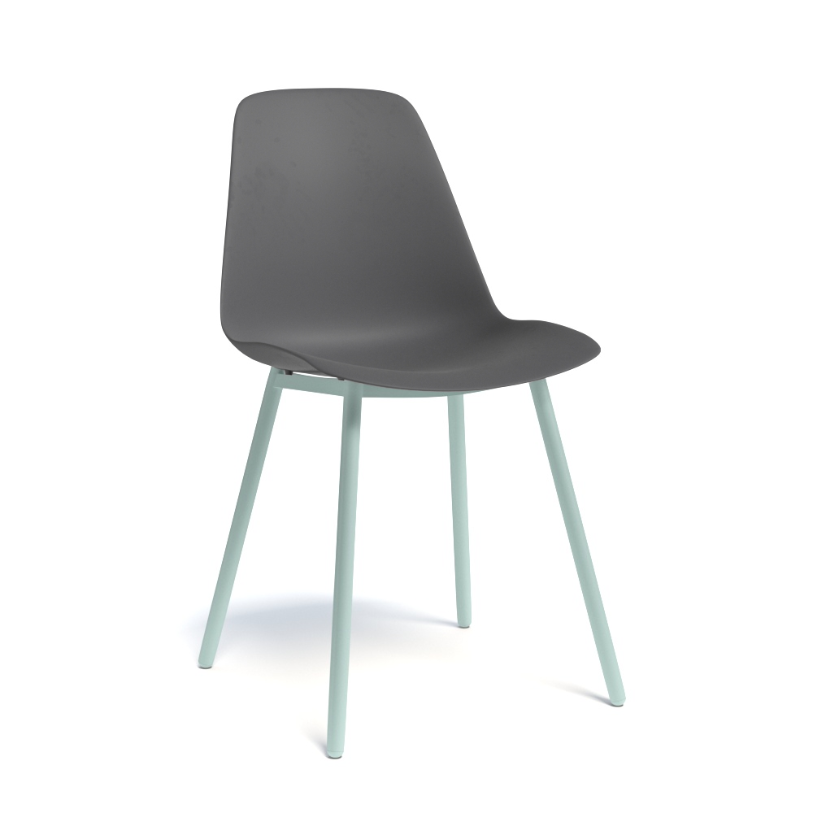 PETALE - Chaise -Finitions : coque POLYPROPYLENE-LISSE coloris ANTHRACITE (PP72) / PIETEMENT EPOXY : coloris LIGHT BLUE MAT (EP59)