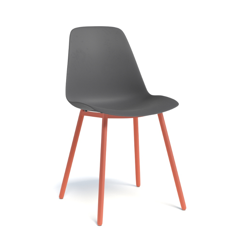 PETALE - Chaise -Finitions : coque POLYPROPYLENE-LISSE coloris ANTHRACITE (PP72) / PIETEMENT EPOXY : coloris ROUGE MAT (EP39)