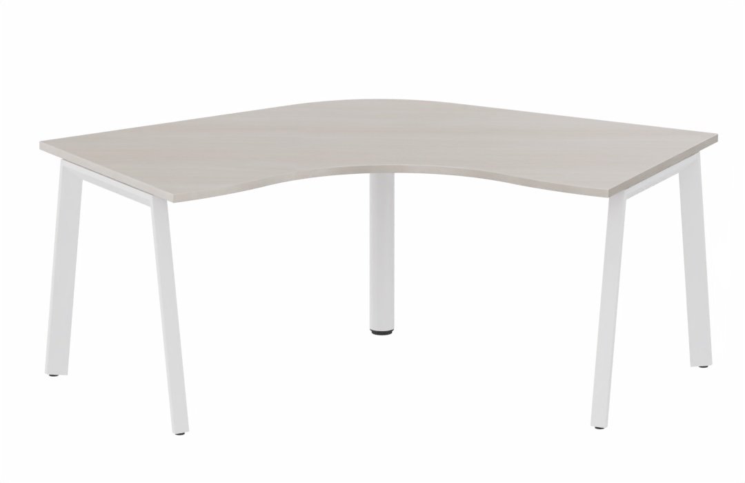Plan compact 120° symétrique 120 x 120 / 80 cm, structure pied d'angle, plateau acacia, structure blanc