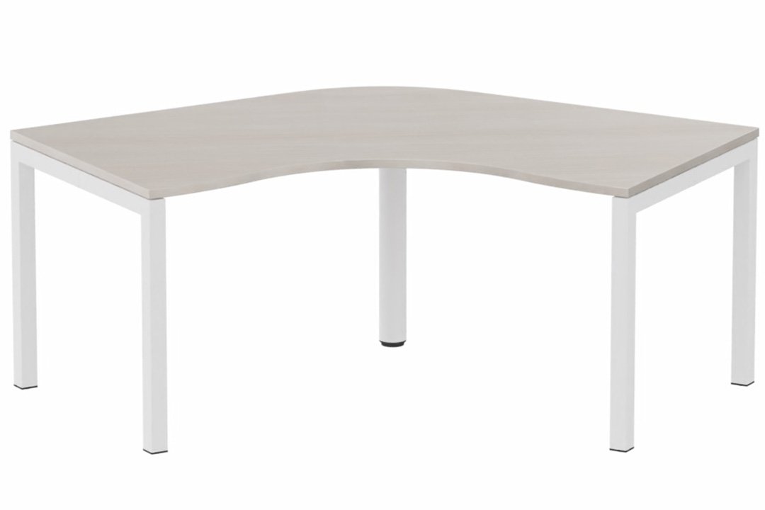 Plan Compact 120° symétrique 120x120/80cm structure pied d'angle, plateau acacia, structure blanc