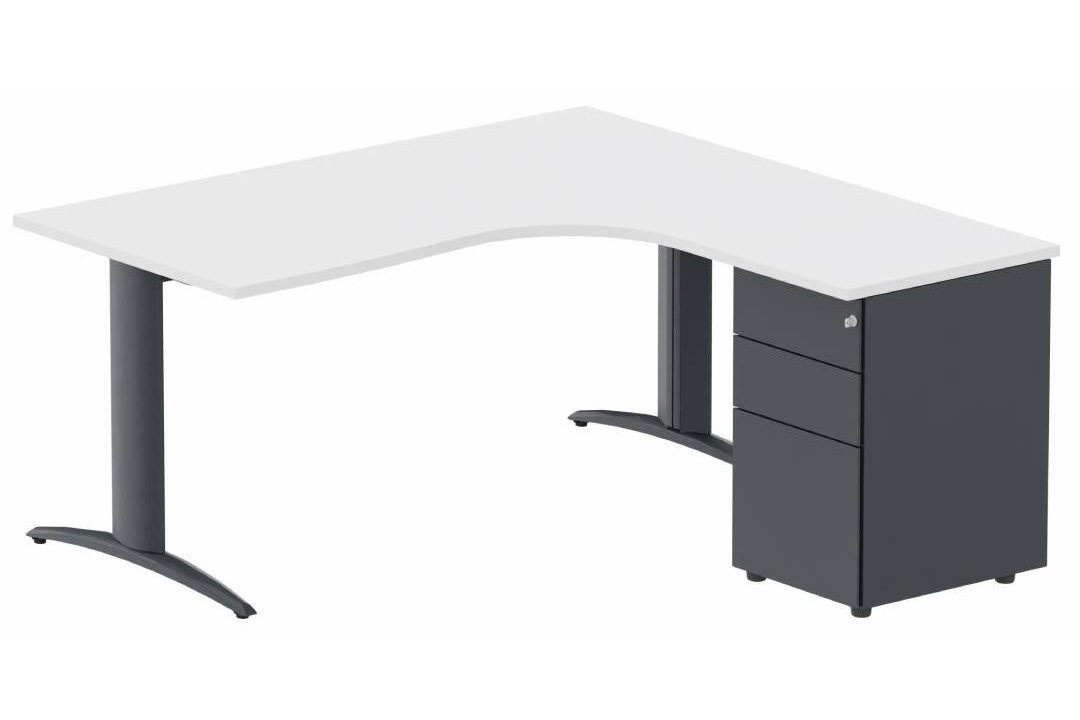 Plan Compact 90° asymétrique 160x162x80/60cm retour à droite avec caisson HB métal 3 tiroirs blanc/ANTHRACITE- sur délai