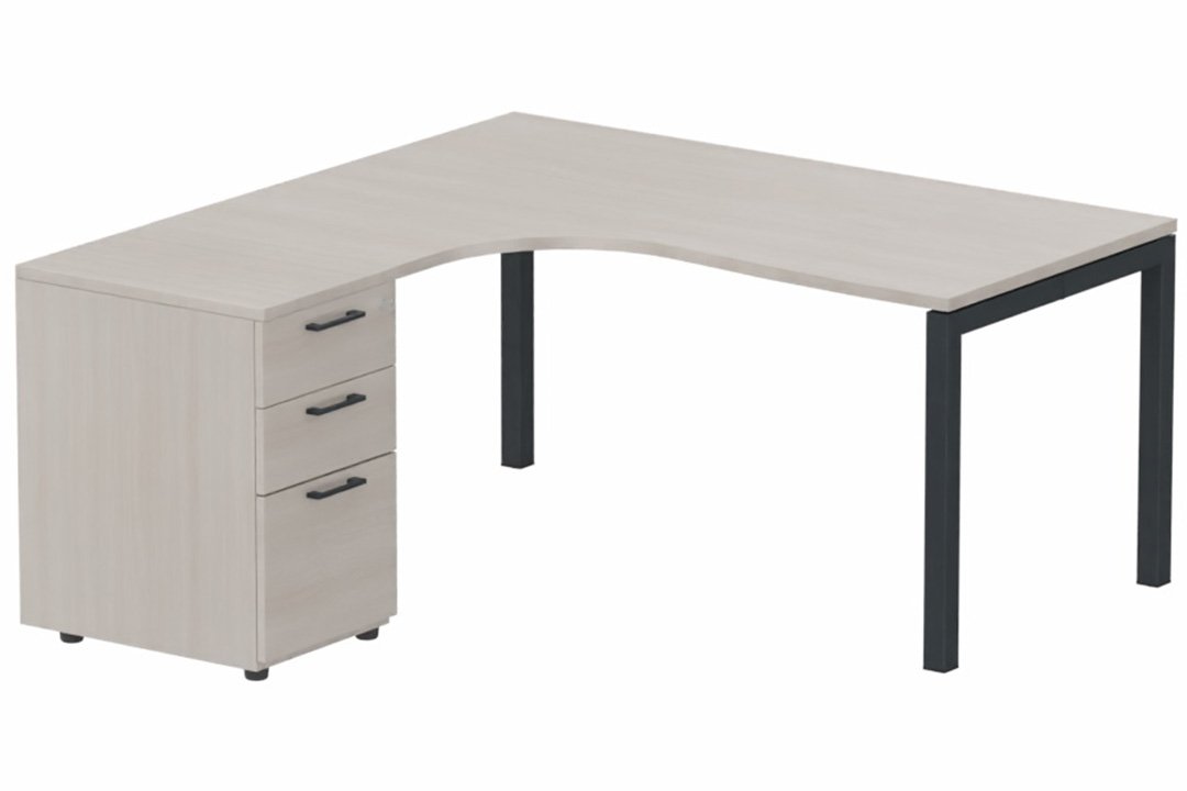 Plan Compact 90° asymétrique 160x162x80/60cm retour à gauche avec caisson HB bois 3 tiroirs, acacia/anthracite