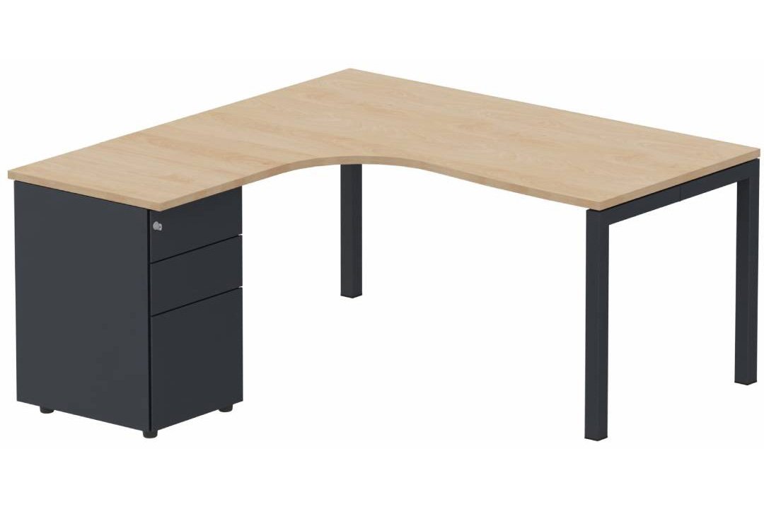 Plan Compact 90° asymétrique 160x162x80/60cm retour à gauche avec caisson HB métal 3 tiroirs hêtre/anthracite