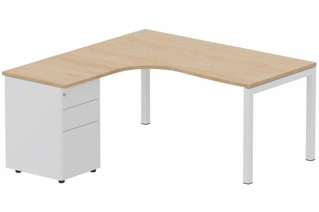 Plan Compact 90° asymétrique 180x162x80/60cm retour à gauche avec caisson HB métal 3 tiroirs hêtre/blanc
